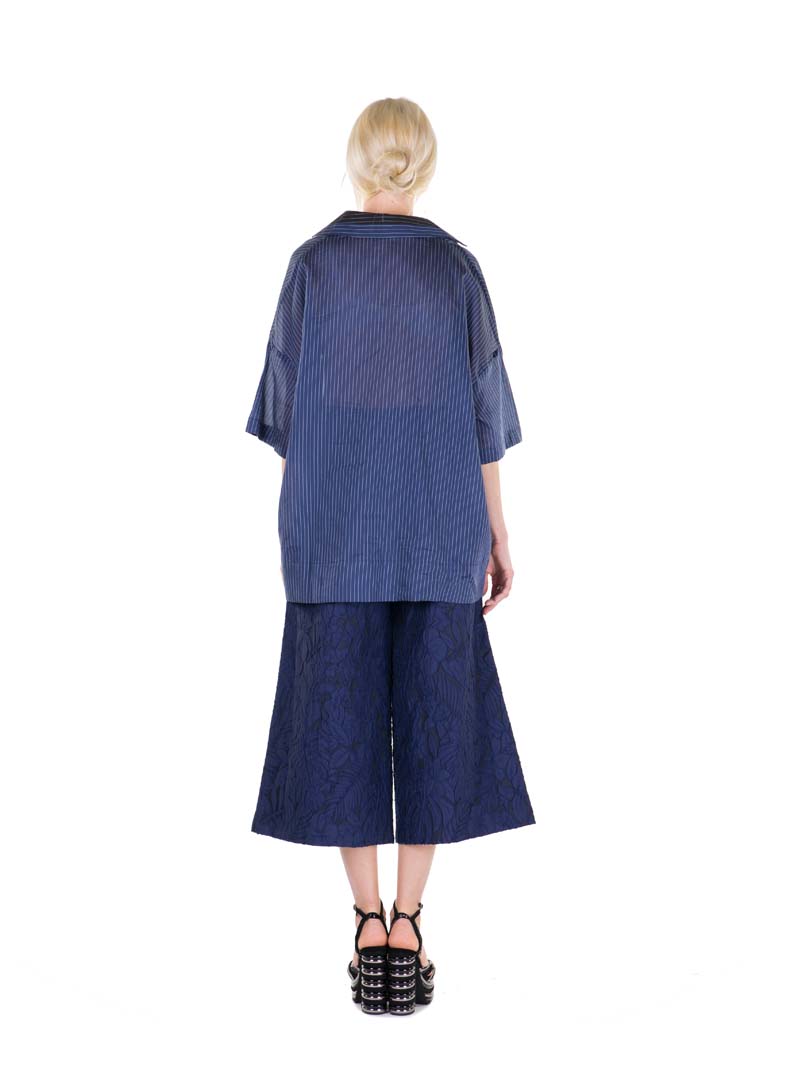 Blouse Product code S2308 Short sleeve kimono blouse, striped print, lapels neckline, loose fit.