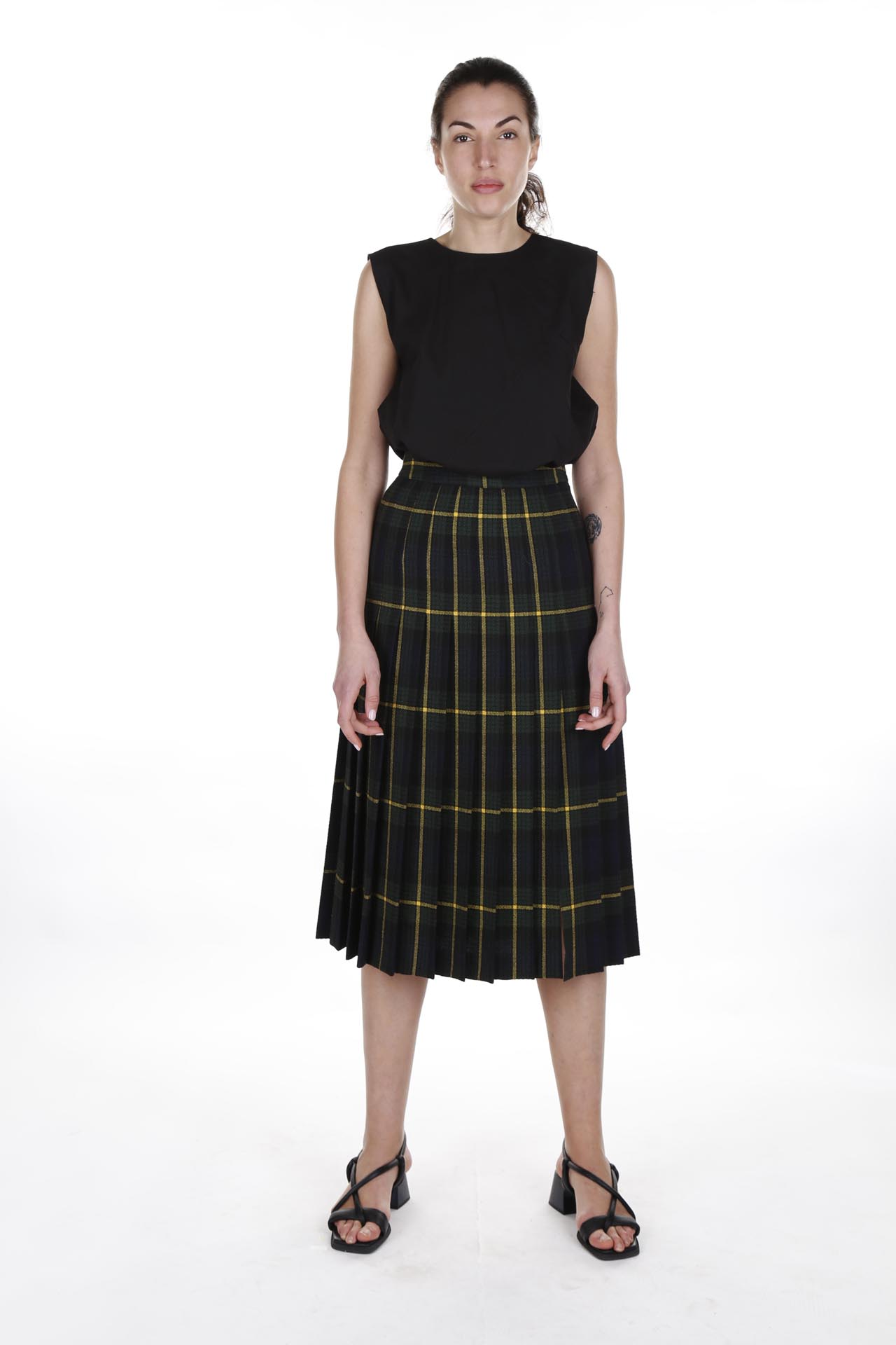 Skirt Product code SG003 Midi skirt, check pattern, side closure with zipper and buttons. Made in Italy